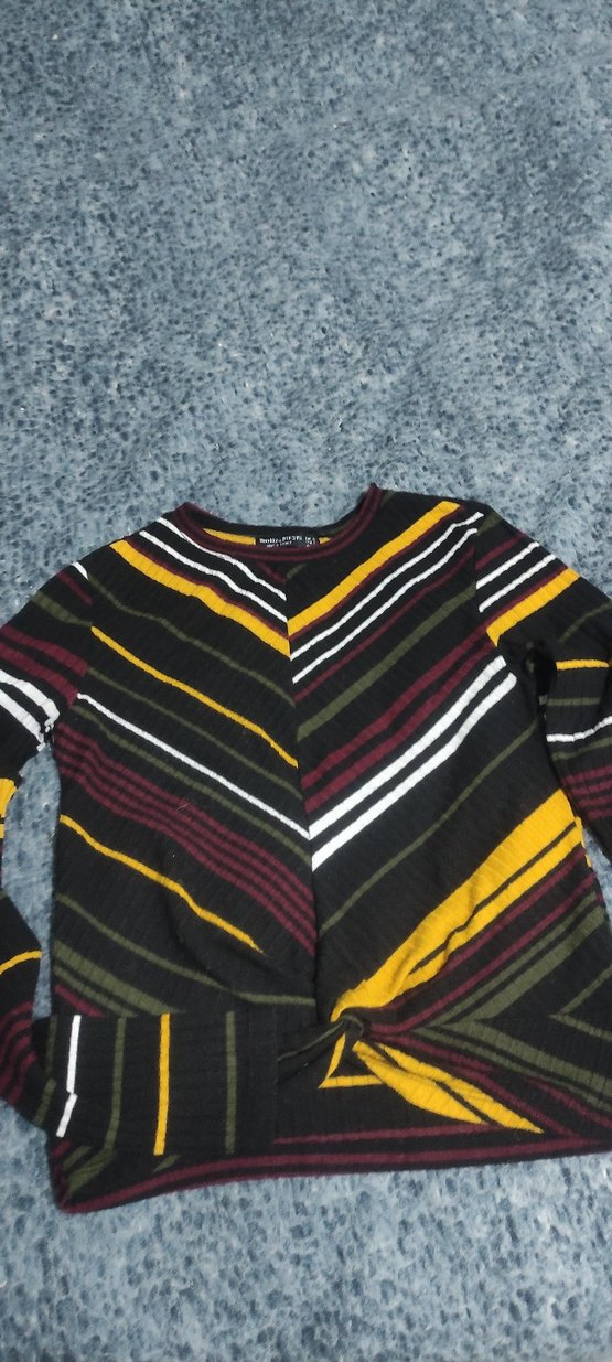 Kadınlar için çok renkli, desenli, uzun kollu, yuvarlak yaka, bol kesim, örme triko kazak. Suni kumaştan, rahat ve sokak stiline uygun.