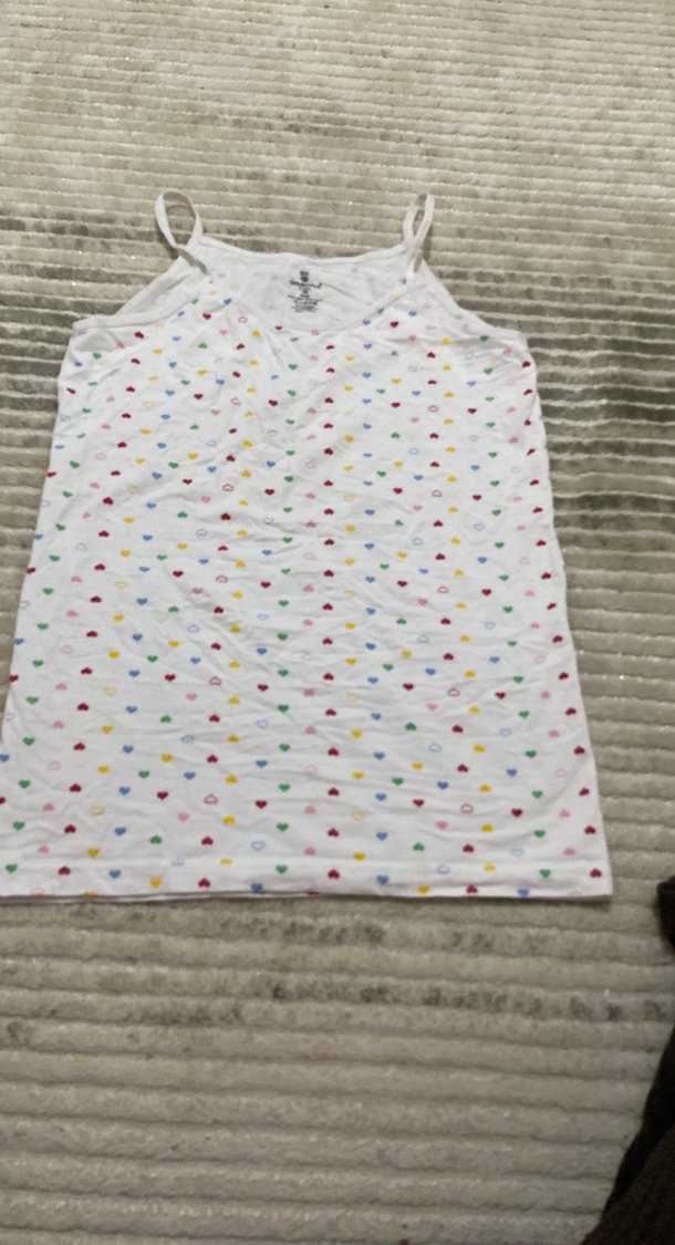 İnce askılı, çok renkli küçük kalp desenli kız çocuk atleti. Günlük kullanım için rahat.