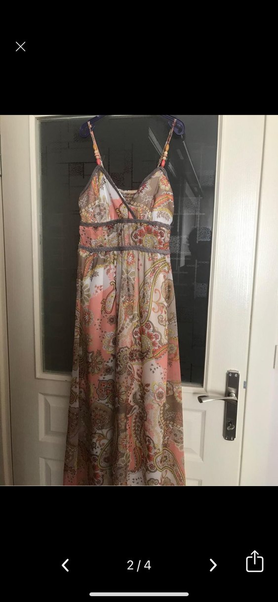 Pastel tonlarda çok renkli desenlere sahip mutfak önlüğü, örgü detaylı kenarları ve süs boncuklarıyla dikkat çekiyor.