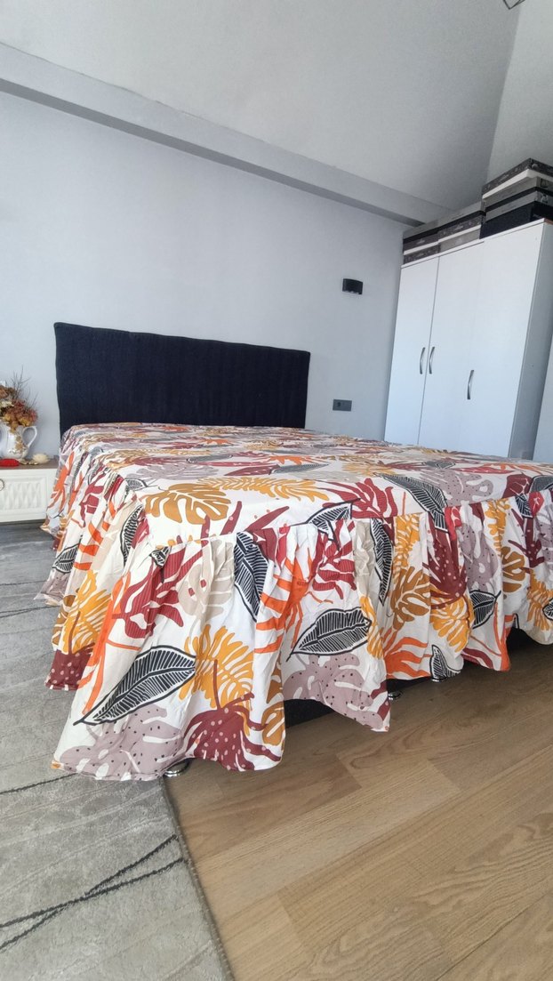 Çok renkli yaprak desenleriyle basılmış yatak örtüsü, yatak odasına canlılık katar. Fırfırlı lastikli çarşaflar takımı 2 adet yastık kılıfı 50* 70 ÖLÇÜLERİNDE @teras_dikimevi İnstagram sayfasından takip edebilirsiniz