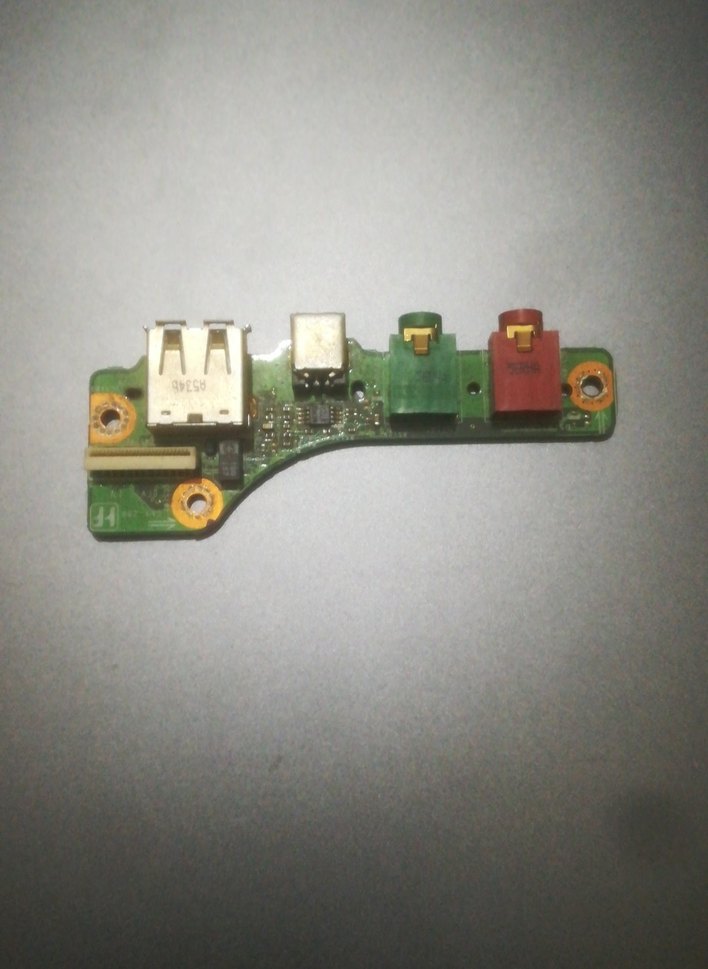 USB ve ses portlarına sahip çok renkli dizüstü bilgisayar devre kartı. Bağlantı ve genişletme için uygundur.