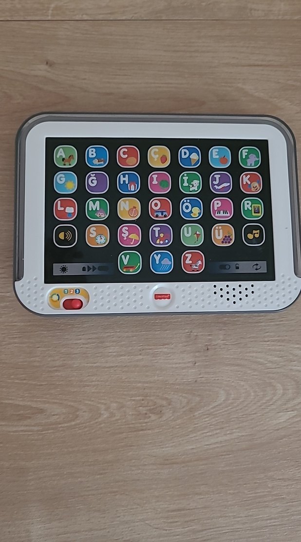 Bu çok renkli eğitici oyuncak tablet, harfler ve semboller içeren düğmelerle çocukların alfabe ve sesleri öğrenmesine yardımcı olur. Sesli ve ses kontrol özelliklerine sahiptir.