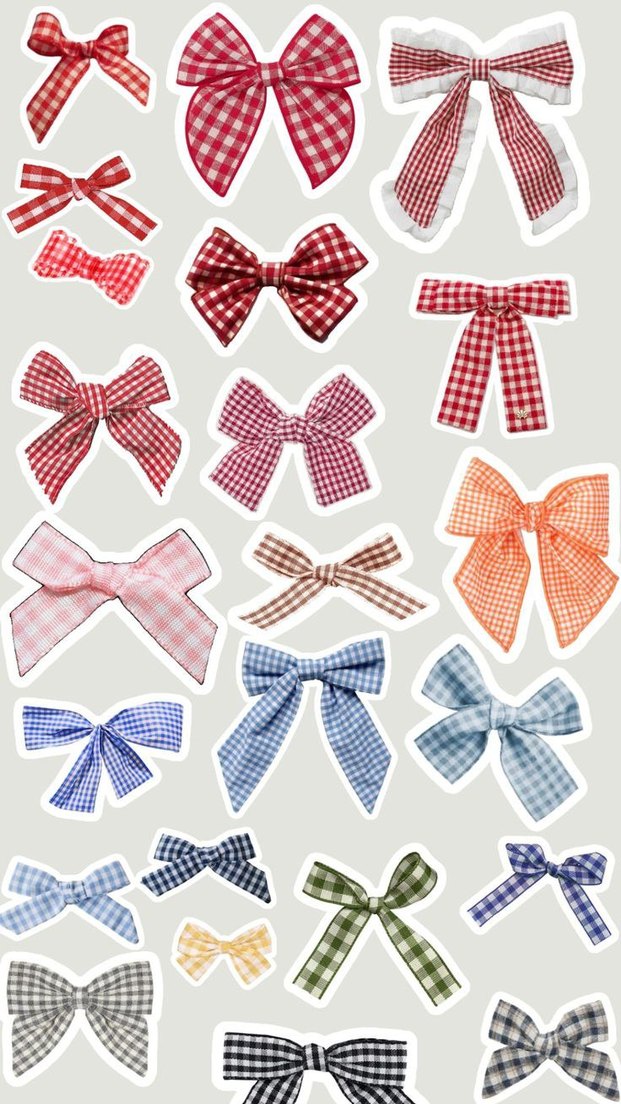 Farklı vintage tarzlarda çok renkli, açık tonlarda ekose desenli papyon sticker
