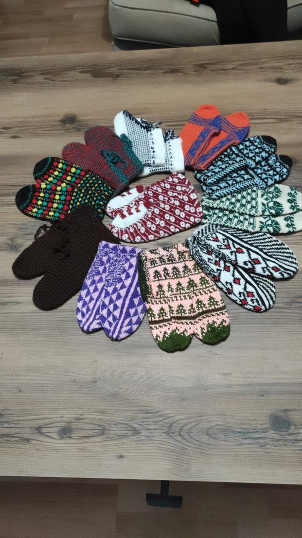 Çeşitli geleneksel desenlerle el örgüsü, çok renkli patikler koleksiyonu. Her çift detaylı işçilikle hazırlanmıştır.