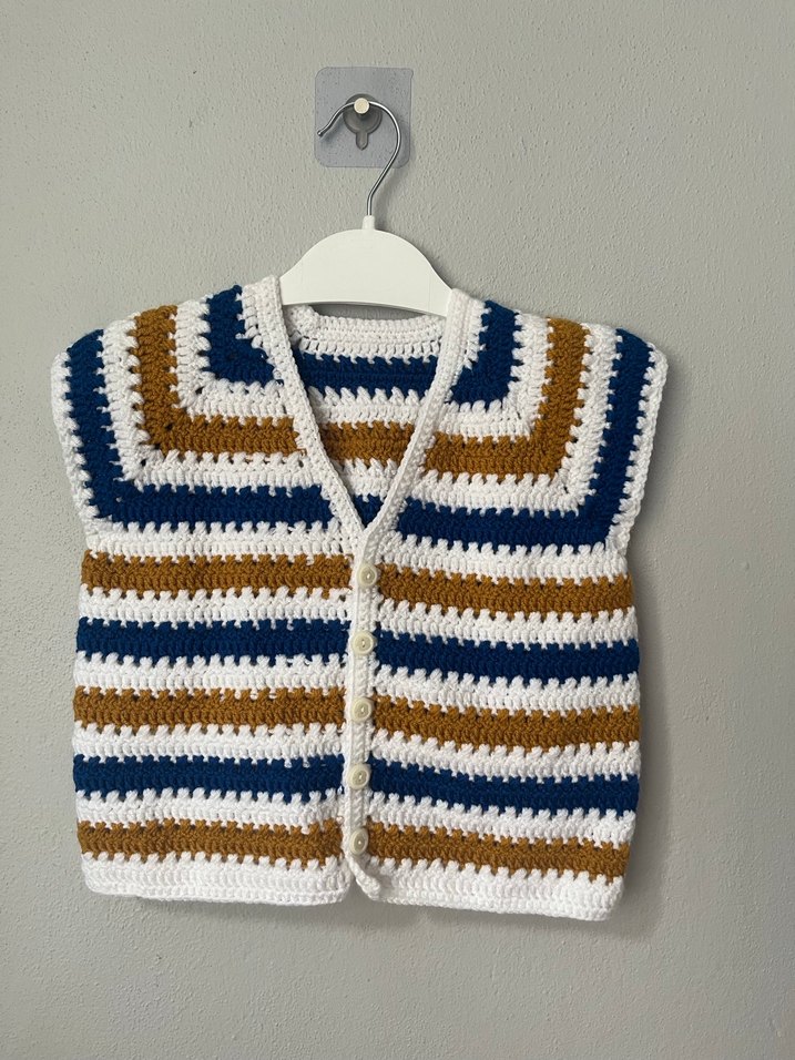Çok renkli çizgili desenli, örgü dokulu, bohem tarzda, kolsuz ve bol kesim erkek çocuk süveteri. Rahatlık için yumuşak örgü kumaştan üretilmiştir. Teklif verebilirsiniz iletişime geçmeden satın almayınız.