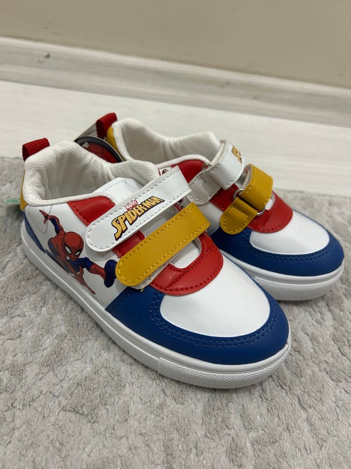 Çok renkli, Spiderman baskılı erkek çocuk sneakers. Kolay giyim için cırt cırt bantlı ve dayanıklı kauçuk tabanlı. Rahat sokak stiline uygun.