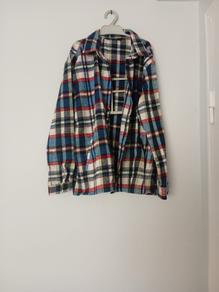 Düğmeli, uzun kollu ve notalı yaka detaylı, çok renkli kareli desenli erkek gömleği. Tekstil kumaştan, rahat kesim ve günlük kullanım için uygun.