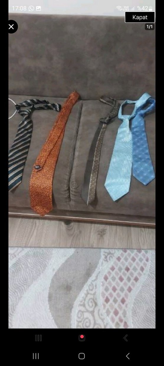 Farklı renk ve desenlerde, gri, mavi, turuncu ve çizgili desenli beş adet erkek kravatı içerir. İş ve günlük sokak tarzına uygundur.