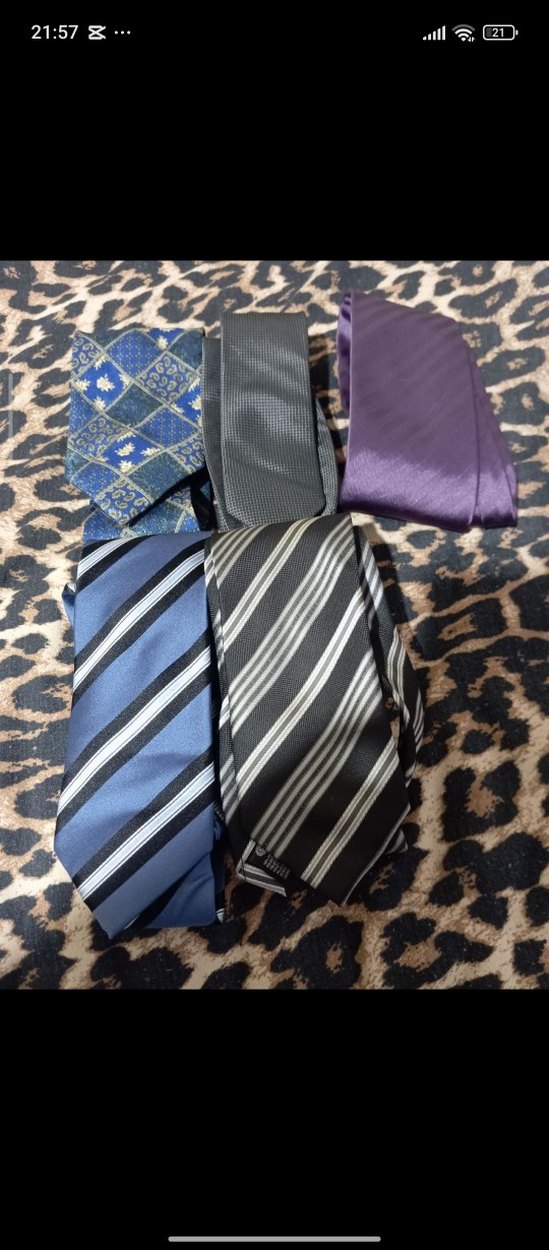Çeşitli desenlerde, koyu ve canlı renklerde beş adet erkek kravat seti. İş ve günlük tarzlara uygun. Hepsi 200 TL