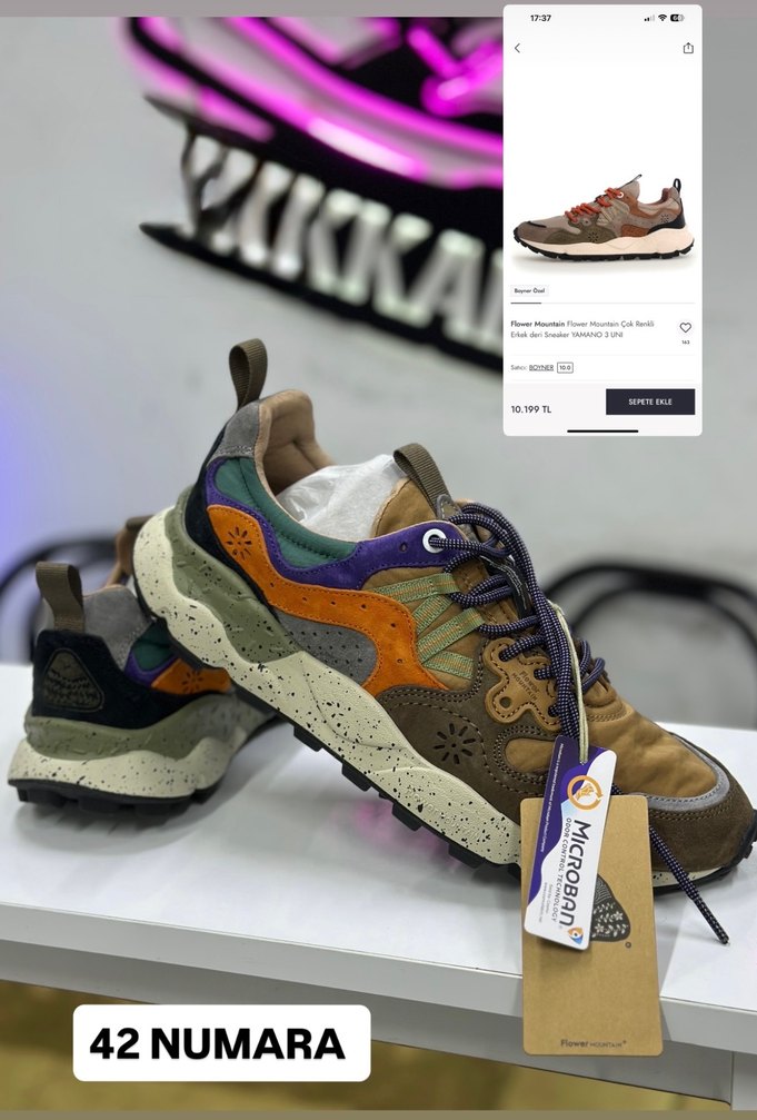 Çok renkli baskılı desen, bağcıklı ve kauçuk tabanlı erkek spor ayakkabısı. Outdoor sokak stili için uygun. Numara 42.