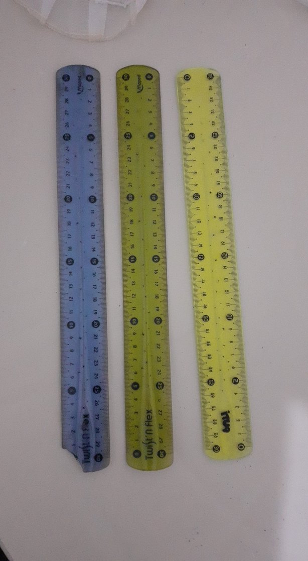 Açık mavi, yeşil ve sarı renklerde esnek cetveller seti, ölçme ve çizim için uygundur. 3 adet fiyatıdır.