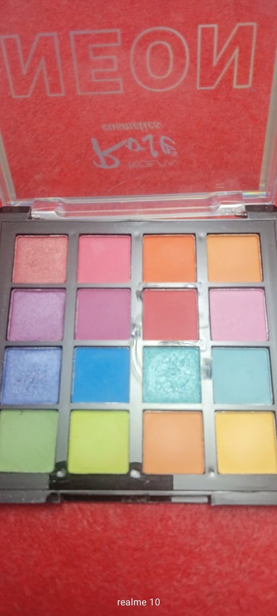Bu far paleti, pembe, turuncu, mor, mavi, yeşil ve sarı gibi çeşitli açık ve canlı tonlar içerir. Neon renkler, az kullanılmış.
