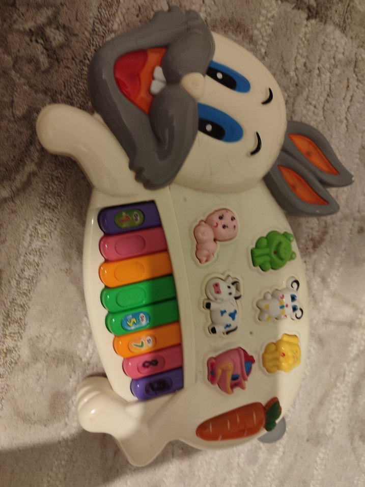 Çok renkli fil şeklinde eğitici oyuncak, renkli piyano tuşları ve hayvan düğmeleriyle çocukların öğrenmesini destekler.