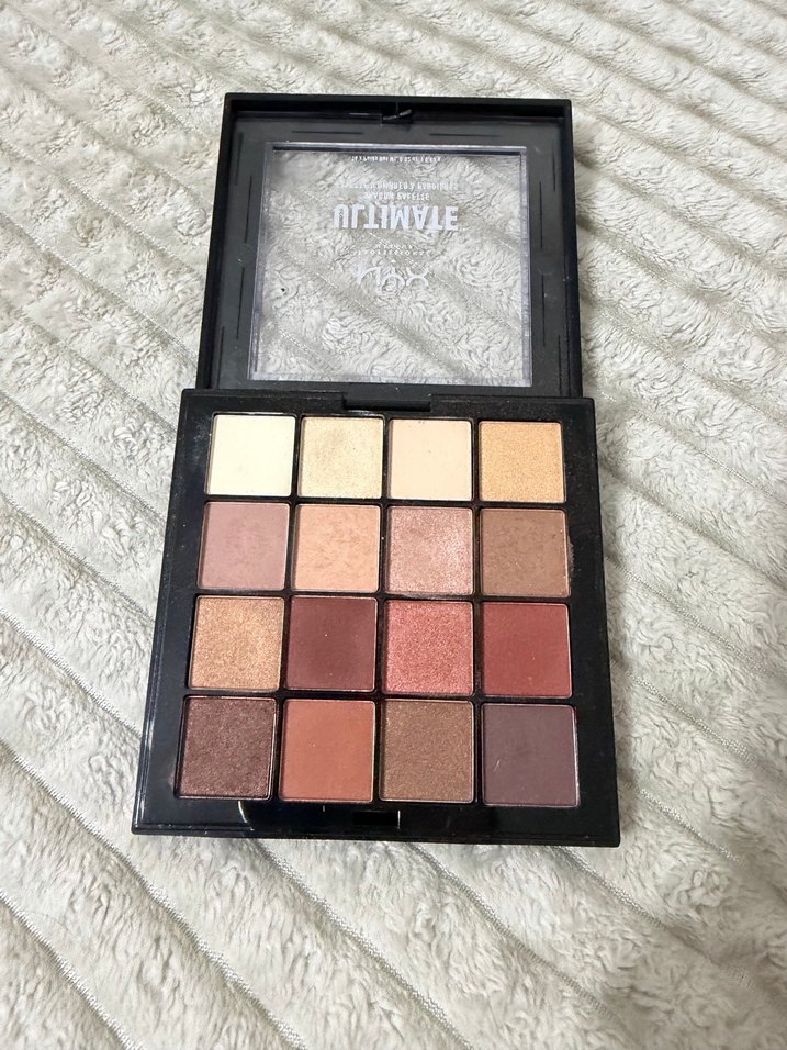 Mat ve parlak bitişli, bej ve koyu tonlarda çok renkli göz farı paleti.
