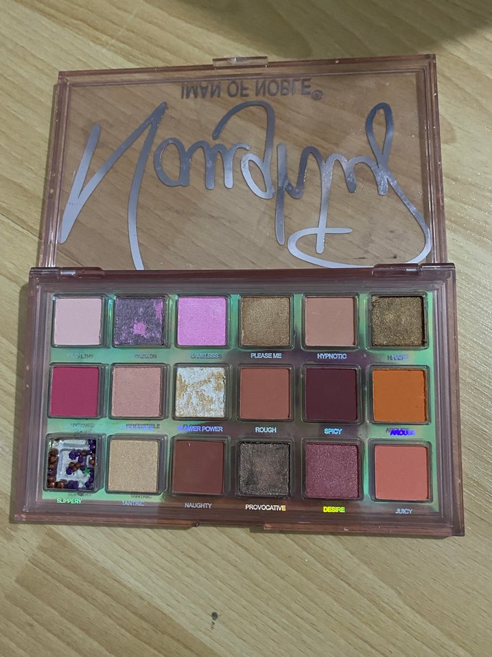 Mat ve ışıltılı karışık koyu kahverengi ve canlı tonlar içeren çok renkli göz farı paleti.