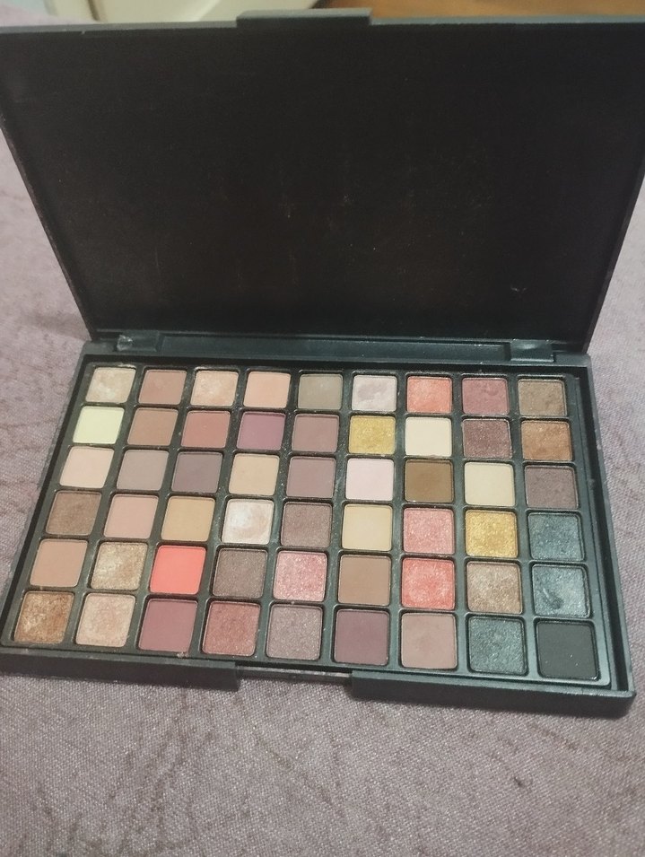 Bu göz farı paleti, mat ve ışıltılı bitişlere sahip koyu ve bej tonlarında çeşitli renkler sunar.