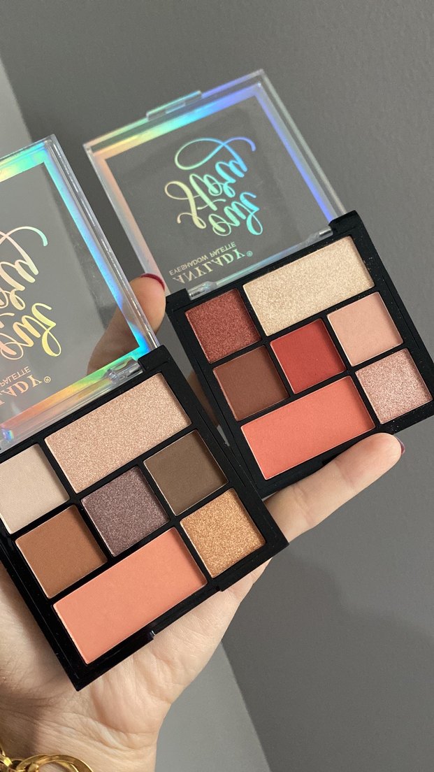 Canlı ve koyu tonlardan oluşan çok renkli göz farı paleti, farklı makyaj stilleri için uygundur.