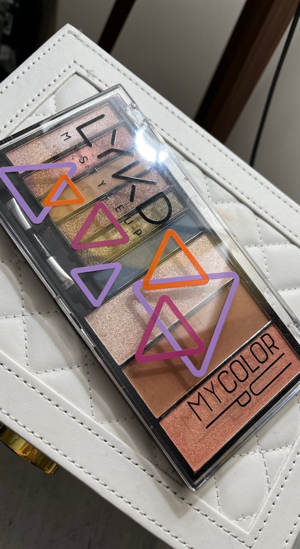 Canlı koyu tonlarda çok renkli göz farı paleti, şeffaf kapaklı kompakt kutuda. sadece denendi