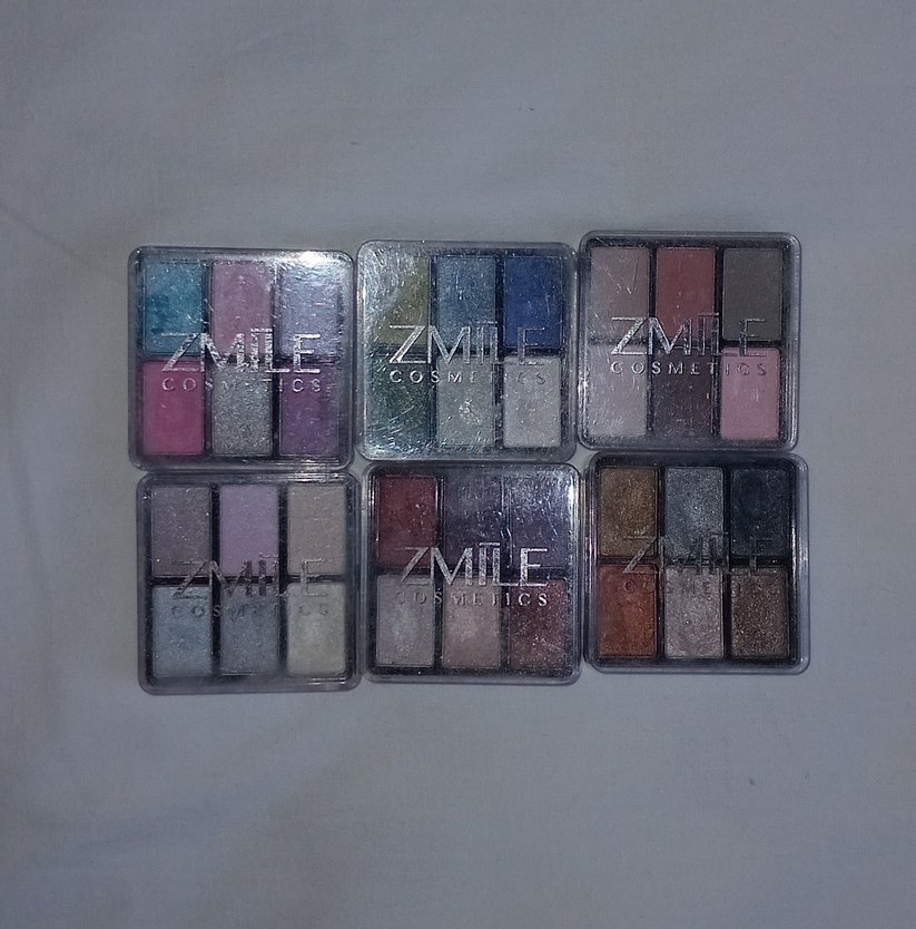 ZMILE Cosmetics'in çok renkli tonlardan oluşan 6'lı göz farı paleti seti. Her palet farklı renk seçenekleri sunar.