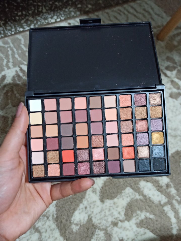 Bej, koyu ve canlı renklerin bulunduğu çok renkli göz farı paleti, çeşitli makyaj seçenekleri sunar. Hiç kullanılmamıştır