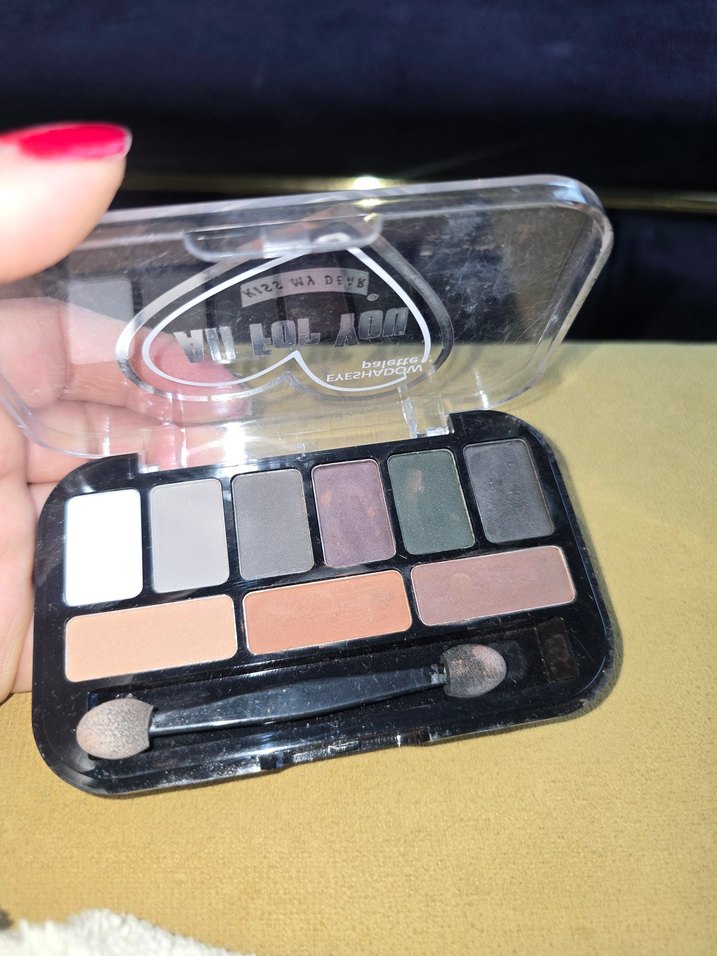 Mat ve ışıltılı dokularda koyu ve bej tonlarında göz farı paleti. İçinde aplikatör de bulunur.