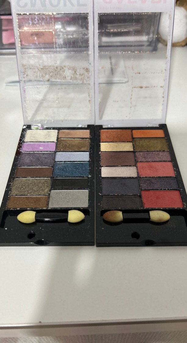 Çeşitli koyu ve canlı renklerde, simli ve mat dokulu çok renkli göz farı paleti. İki aplikatör ve şeffaf kapak içerir.