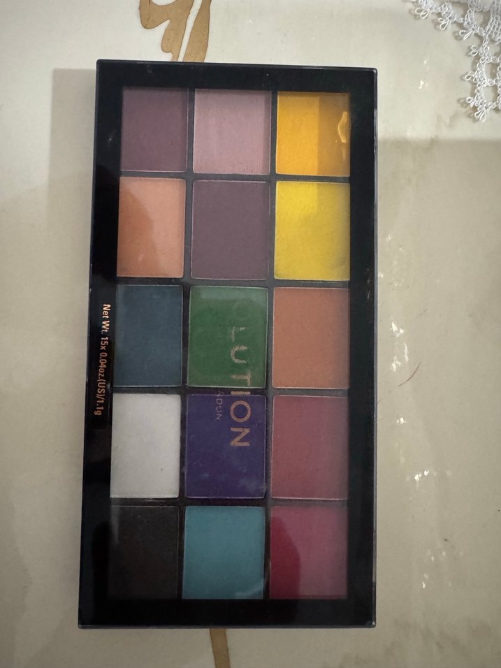 Çok renkli göz farı paleti, koyu ve canlı tonlar içerir. Ambalajda LUT markası yer alır.