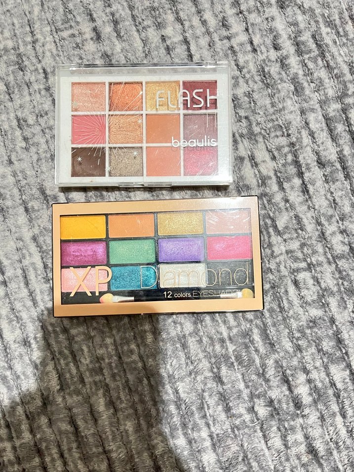 Farklı canlı açık tonlarda pembe, kahverengi, yeşil ve mor renkler içeren iki göz farı paleti. Çoklu renk seçenekleri sunar. İkili far paleti az kullanılmış sorunsuz