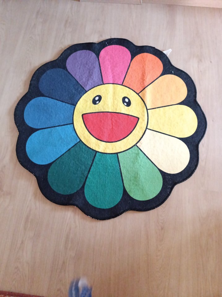 Çok renkli yaprakları ve gülen yüzü ile çocuk odalarına neşe katan çiçek desenli halı. çap 97 cm