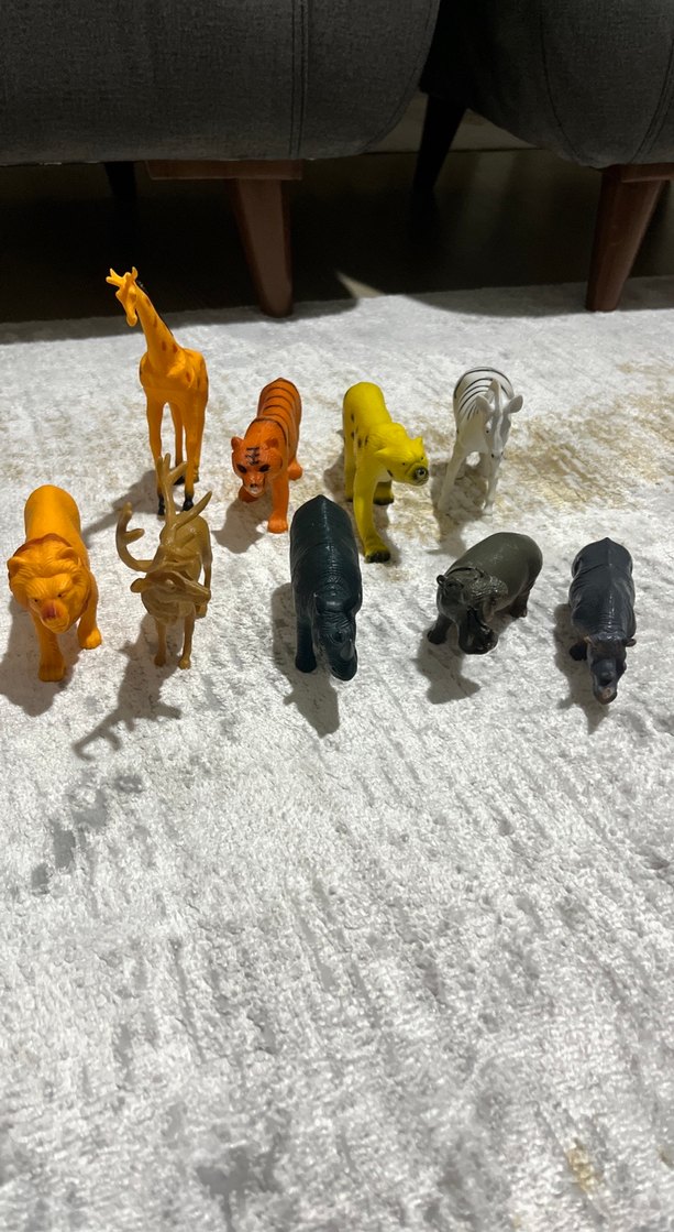 Farklı hayvanları temsil eden çok renkli figürler seti. Zürafa, kaplan, aslan ve daha fazlası bulunur. Canlı renklerde ve detaylı.