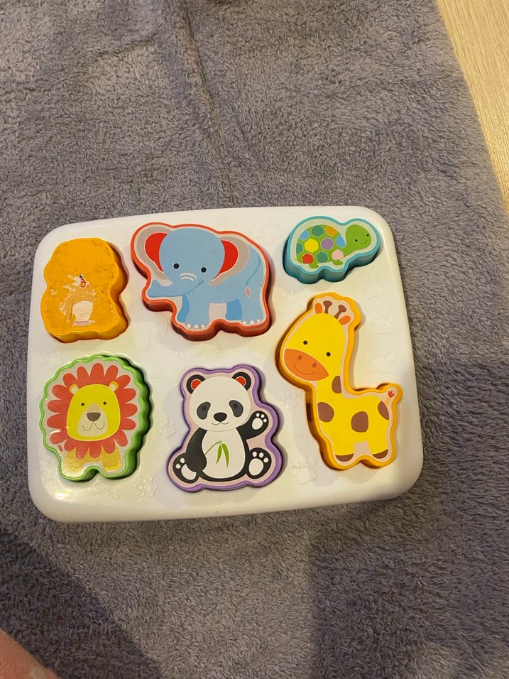 Bu eğitici oyuncak, fil, aslan, panda, zürafa, kaplumbağa ve ayı gibi renkli hayvan figürleri içerir ve çocukların şekil ile hayvanları öğrenmesine yardımcı olur.