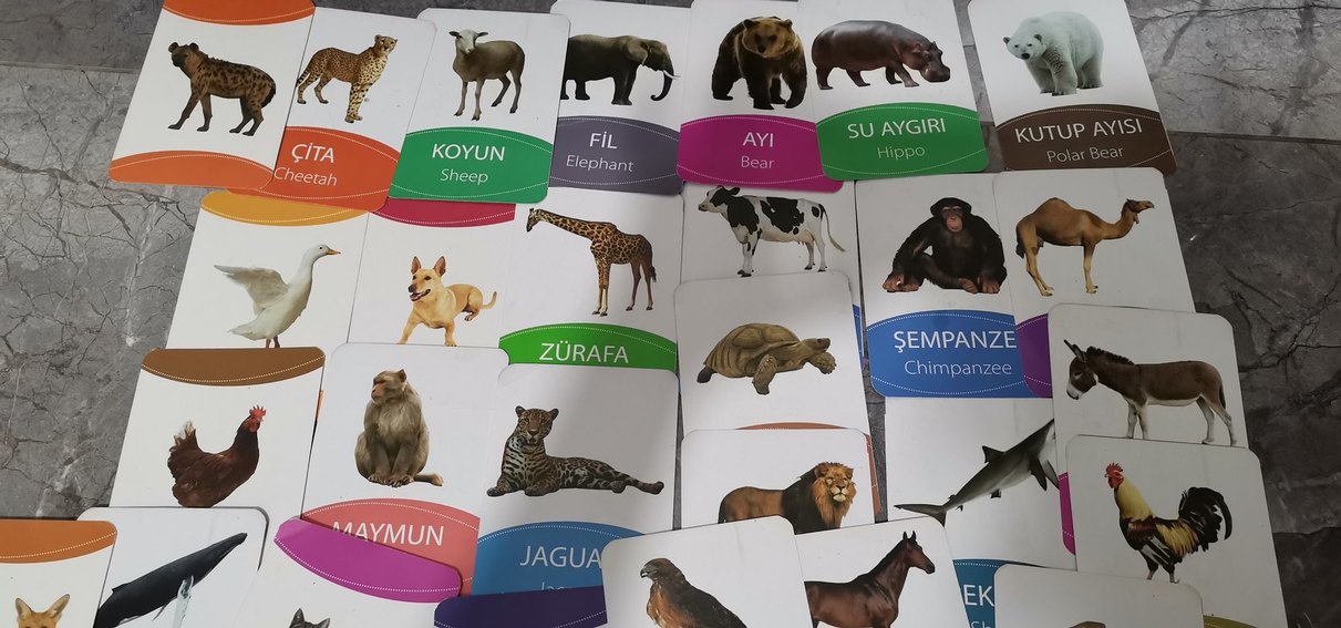 Bu çok renkli kartlar, farklı hayvanların Türkçe ve İngilizce isimleriyle dil ve hayvan tanımayı destekler. Kartlar ingilizce olarak hayvanları tanımasına hemde zihinsel zekasını geliştirecek birbirinden farklı hayvanlardan oluşan çoklu kartlar çok uygun fiyatlı. 30 farklı hayvandan oluşur