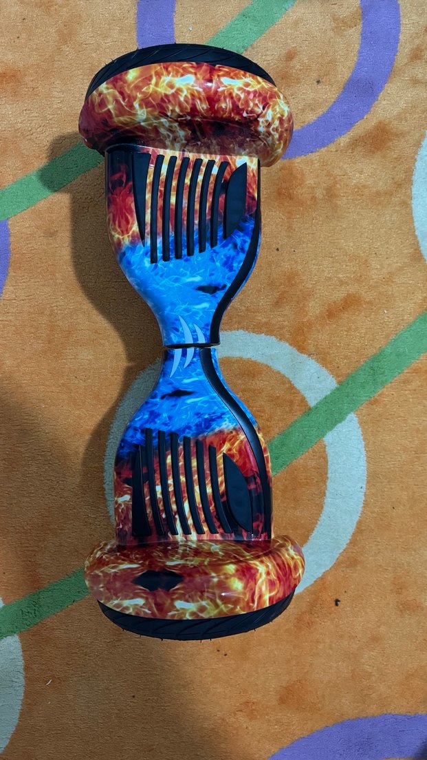 Çok renkli, koyu tonlarda alev desenli howerboard . Dayanıklı yapıya sahiptir. Sapasaglam sıfıra yakın şarj aleti eksik o yüzden fiyatı makul tutuyorum