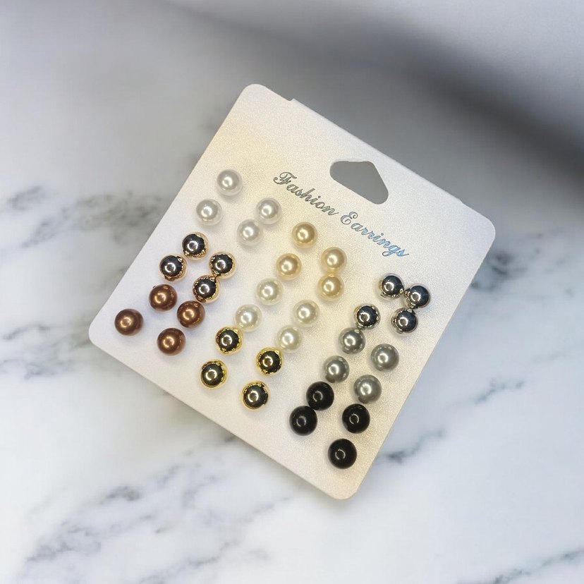 Hafif, çok renkli inci boncuklu küpeler, vintage tarzda. Günlük kullanıma uygun sade ve temel tasarım.