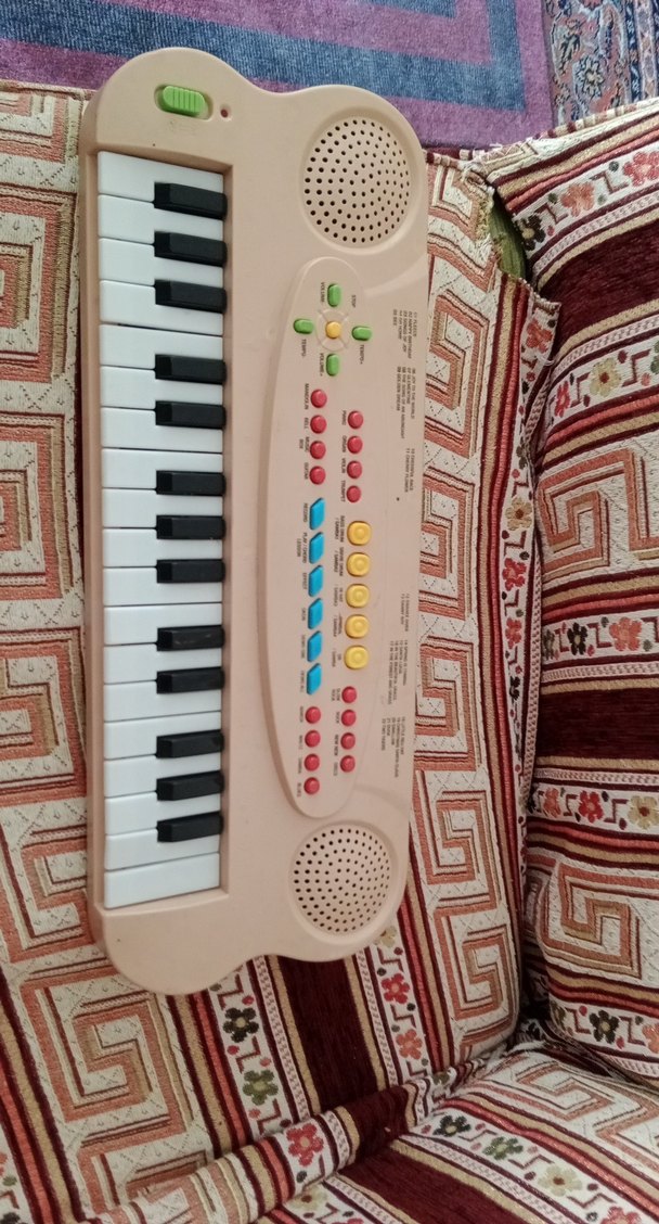 Çok renkli, ışıklı tuşları ve hoparlörleri olan fonksiyonel bir müzik oyuncağı klavye.