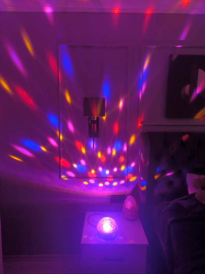 Çok renkli masa lambası, canlı ışık desenleriyle odanıza renkli bir atmosfer katar. Dekoratif ve hareketli bir ışık sağlar.
