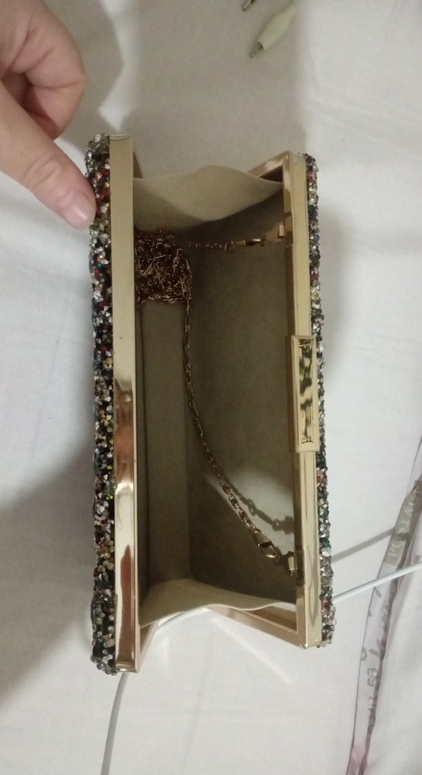 Bu kadın portföy çanta, koyu çok renkli payetler ve işlemeli desenlerle sentetik kumaştan yapılmıştır. Bohem tarzı ve gösterişli düğünler için uygundur.