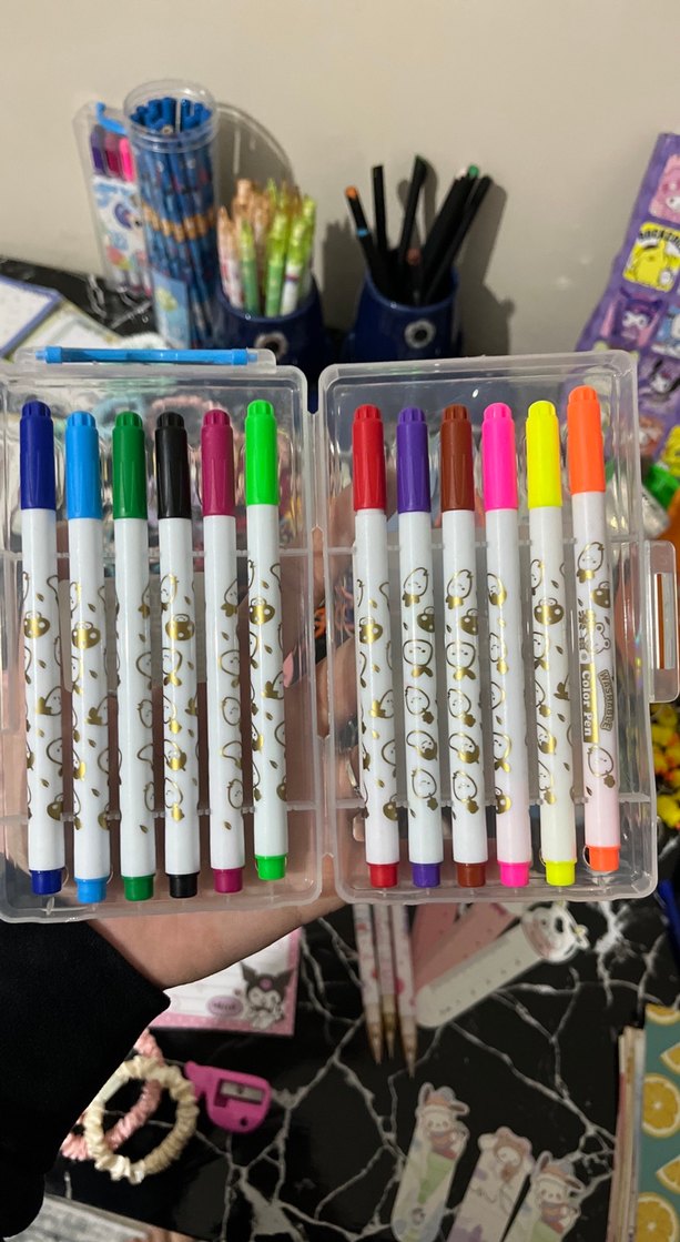 12 parça kutulu jel kalem seti . Birden fazla canlı renkte mürekkebe sahip jel kalem seti. Beyaz gövdede gülen yüz desenleri bulunur. Yazı ve çizim için uygundur. ️