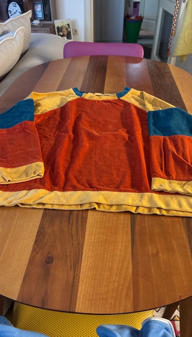 Desensiz, çok renkli koyu tonlarda (turuncu, mavi, sarı) yumuşak kadife kazak