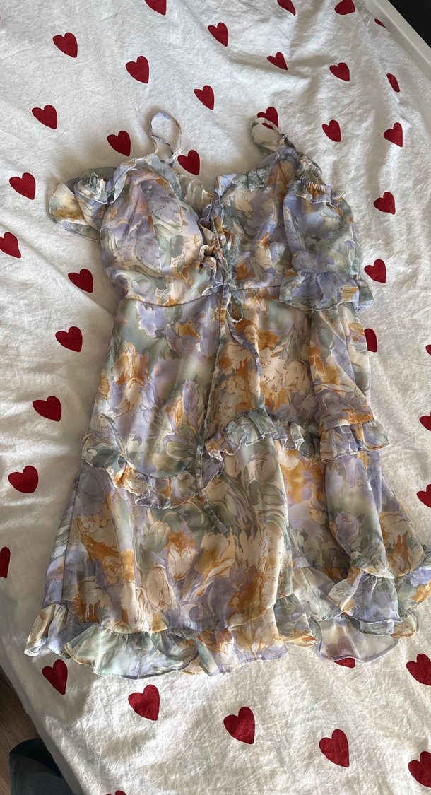 Bohem tarzda, çok renkli pastel tonlarda, askılı elbise. Yumuşak kumaş ve fırfır detaylı S ve M beden uyumlu, göğüs pedleri var.
