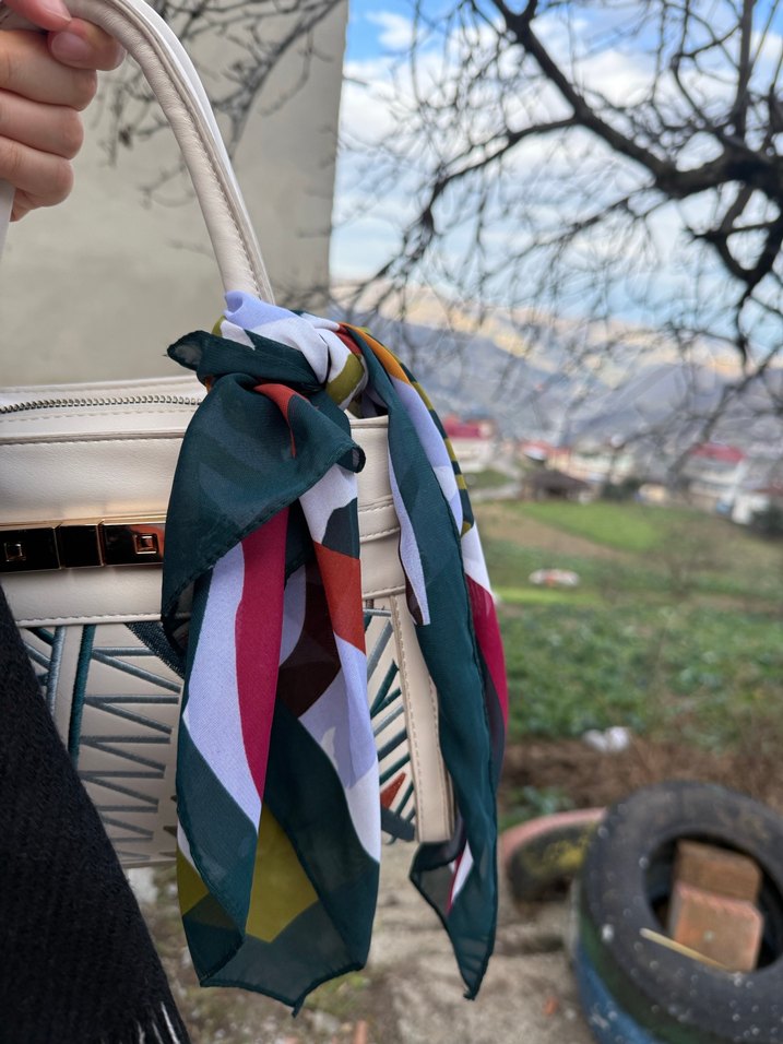 Kadınlar için çok renkli, drapeli tasarıma sahip fular. Pop kültür ve avangart tarzdan esinlenmiş canlı koyu renk desenleri bulunur. Yumuşak tekstil kumaşından şifondan yapılmıştır. Kadıköy’den aldım.