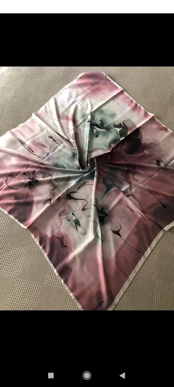 Bu koyu çok renkli fular, ipeksi dokusu ve drapeli tasarımıyla, Parisli çağdaş tarzı yansıtıyor.