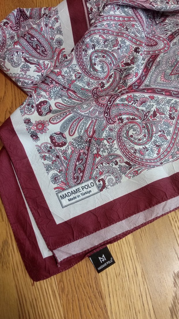 Bordo, gri etnik desenli, trend kadın şal