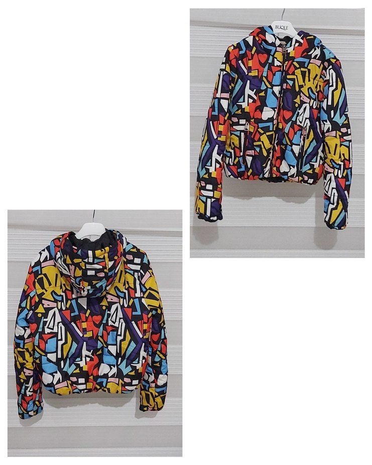 Çok Renkli Kapüşonlu Kadın Mont