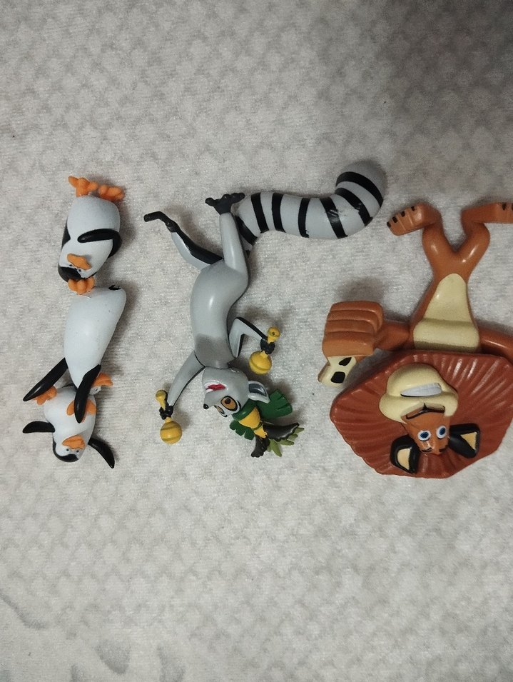 Penguen, lemur ve yeleli aslan figürlerinden oluşan çok renkli set. Her figür detaylı ve oyun ya da koleksiyon için uygun.