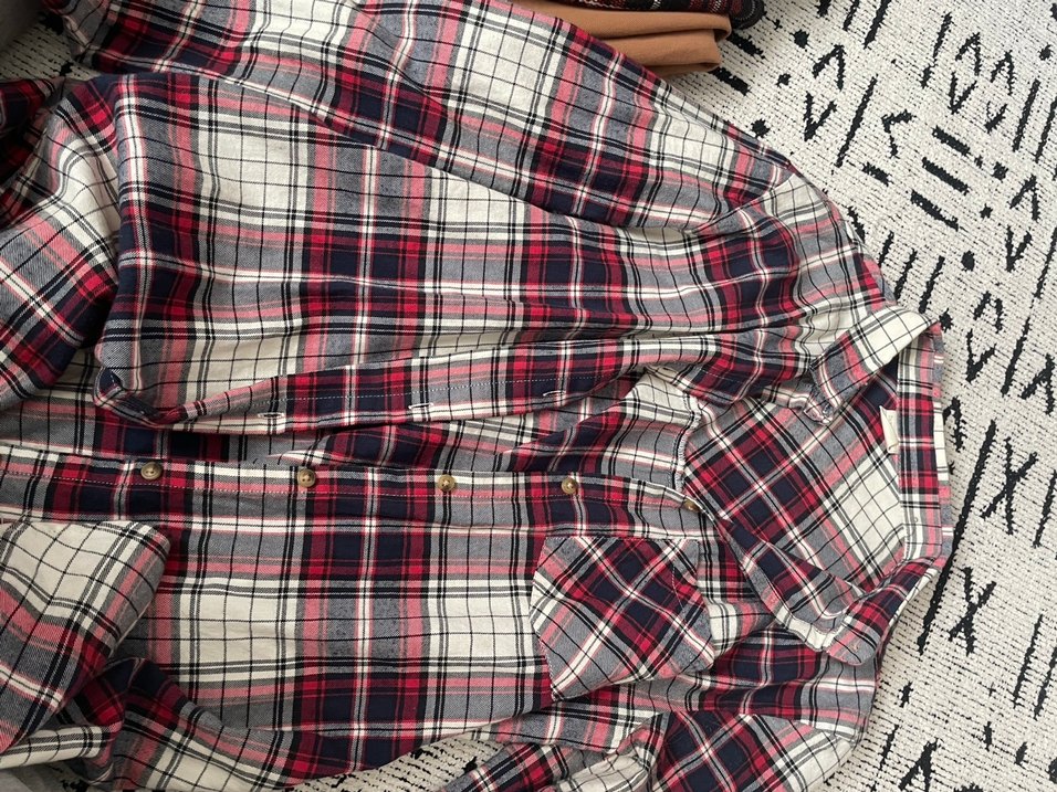 Kız çocuk için çok renkli kareli desenli, düğmeli, tekne yaka ve askılı kollu, midi boy, bol kesim gömlek. Günlük kullanıma uygun rahat tasarım.