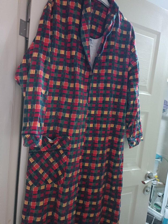 Gevşek kesim, çok renkli koyu kareli desenli uzun kollu erkek pijama. Düğmeli ve yakası notalıdır, rahat ve retro bir tarz sunar.