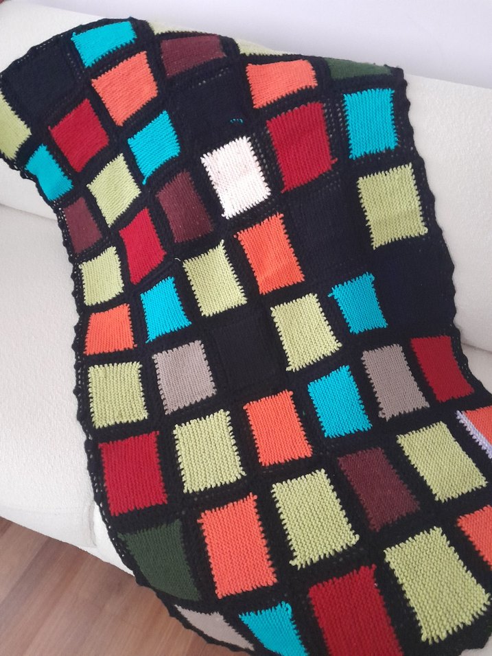 Çok Renkli Kareli Örgü Battaniye