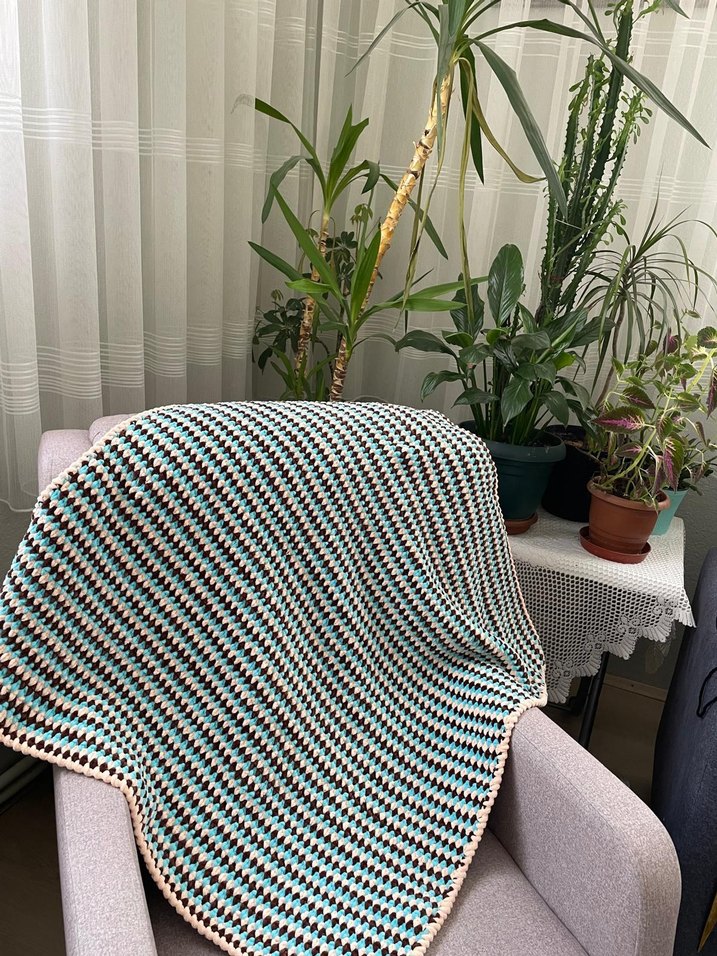 Çok Renkli Kareli Örgü Çocuk Battaniyesi