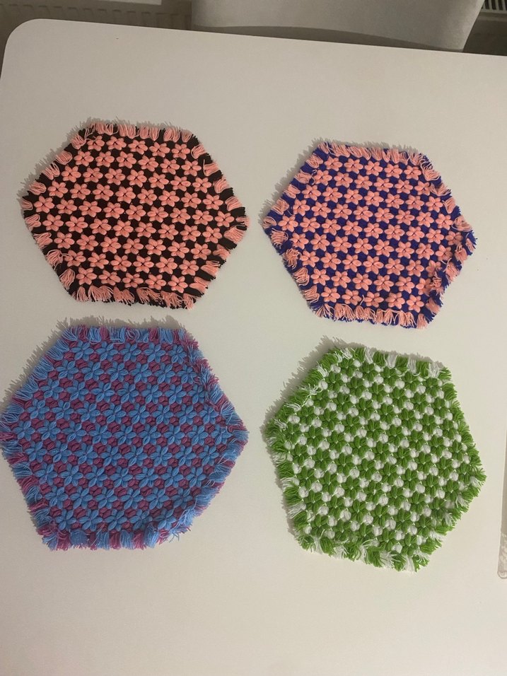 Yumuşak dokulu, çok renkli altıgen banyo lifleri. Nazik temizlik için uygundur. Kasnakta örülmüştür. Adet fiyatıdır.